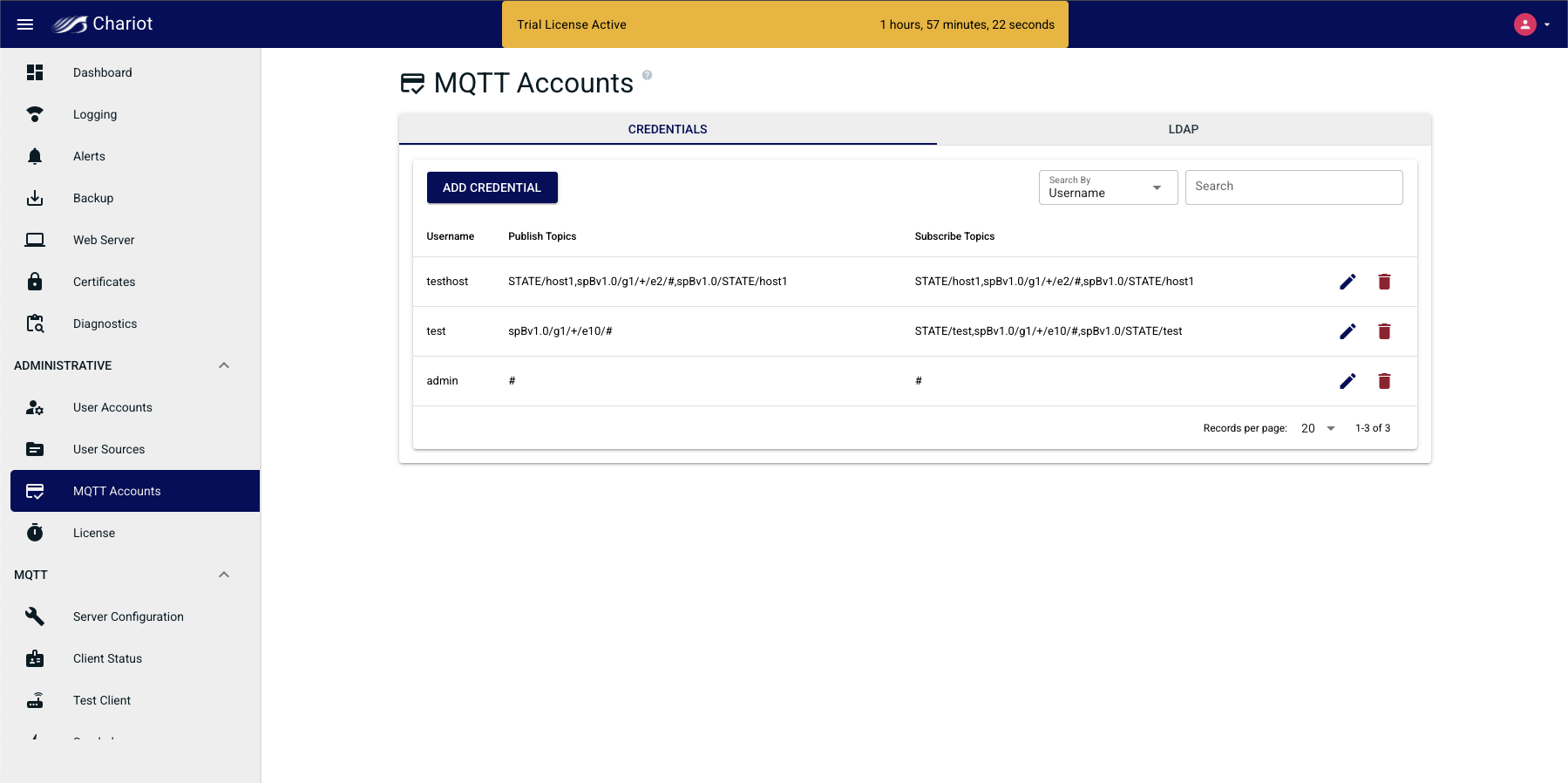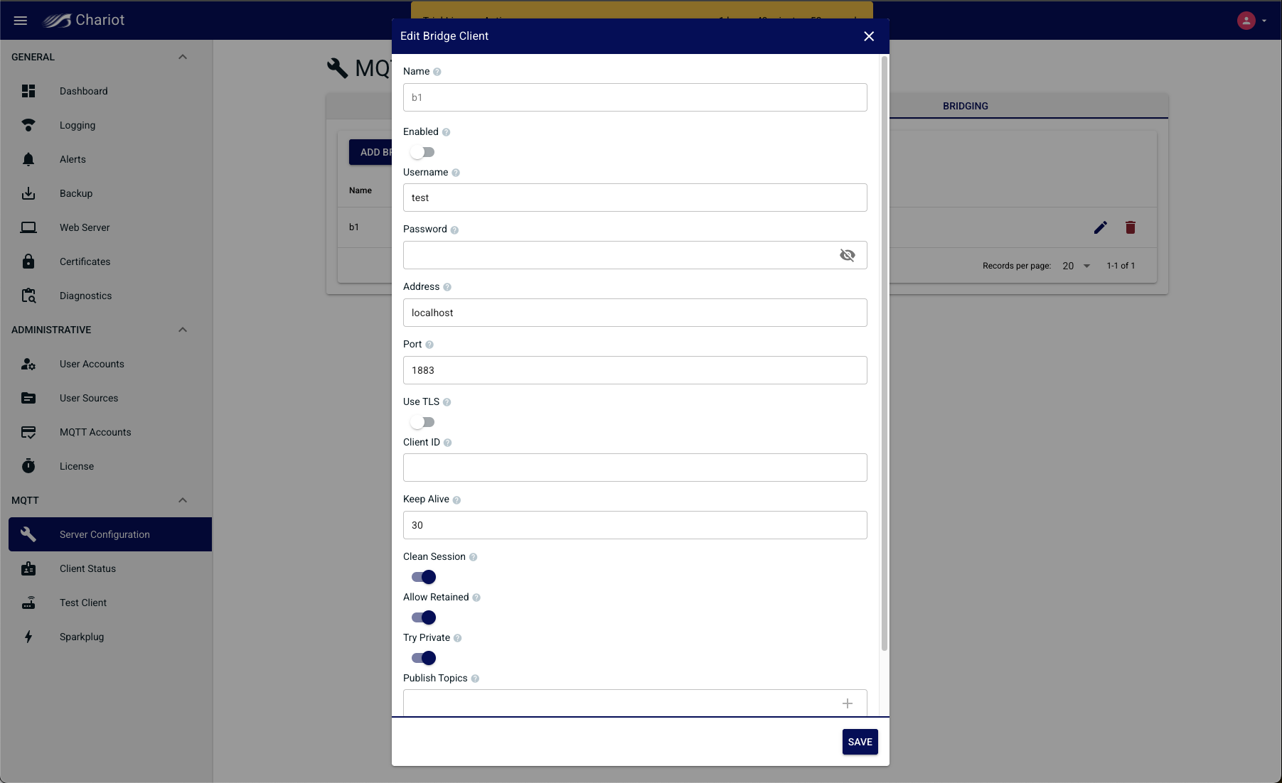 - See the Chariot UI under the "MQTT Server Configuration" tab
