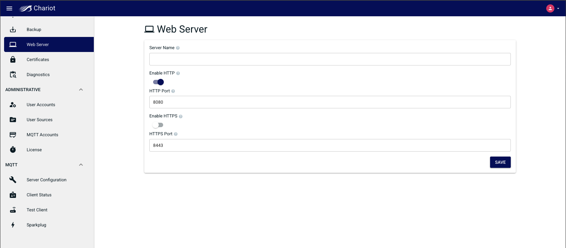 - The port that the Chariot MQTT Server will use for HTTP.