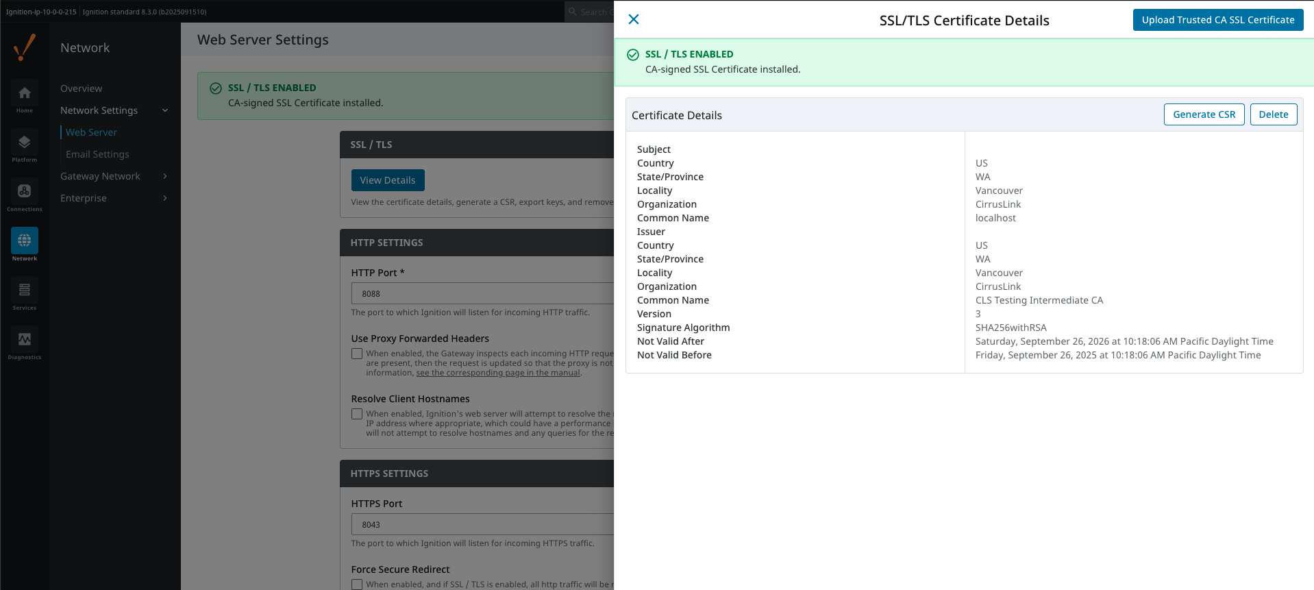 Follow the steps outlined in the Ignition Secure Communication (SSL / TLS) document using the Certification wizard to import the certificates needed to SSL enable the Ignition Web Server.