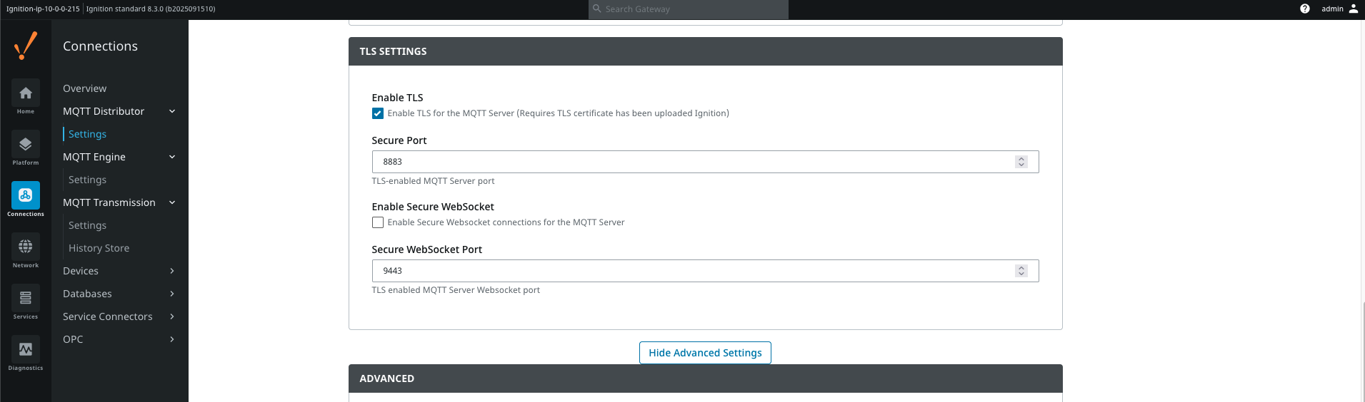 MQTT Engine and Transmission should now show connected to Distributor over SSL/TLS.