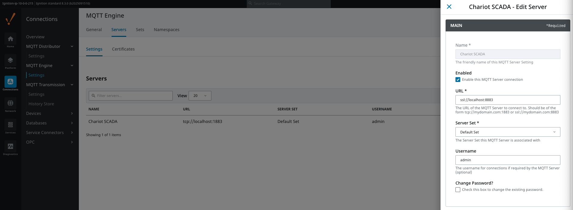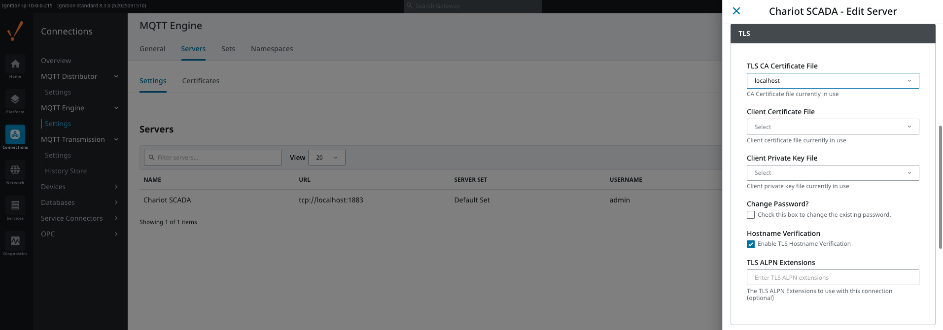 For MQTT Engine and MQTT Transmission to connect to Distributor over SSL/TLS you will need to update each Server configuration.
