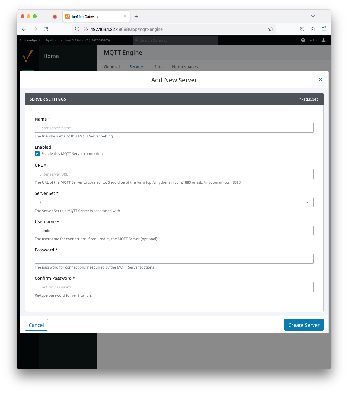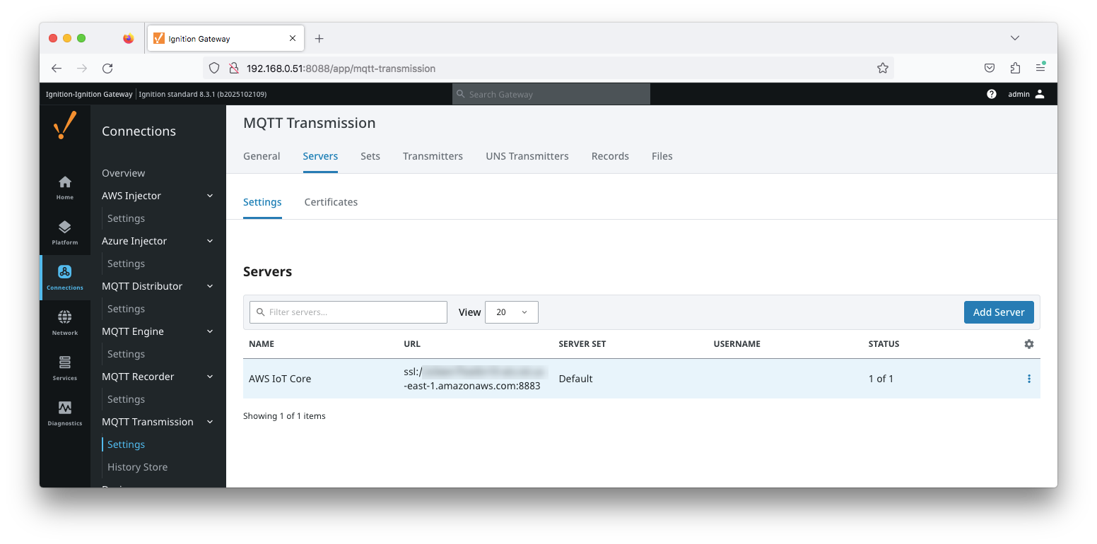 - Note this will be used for both a publisher connection (Ignition) and a subscriber (MQTT Engine and/or MQTT Transmission)