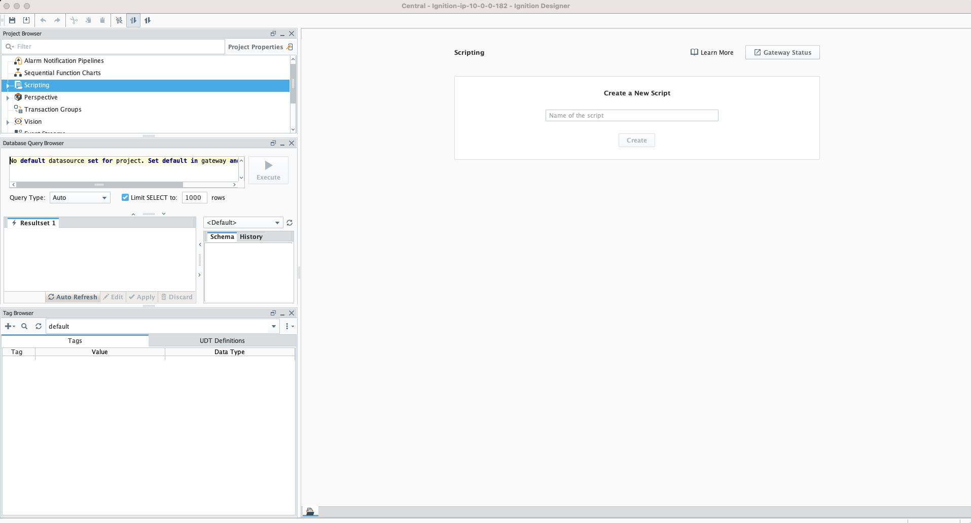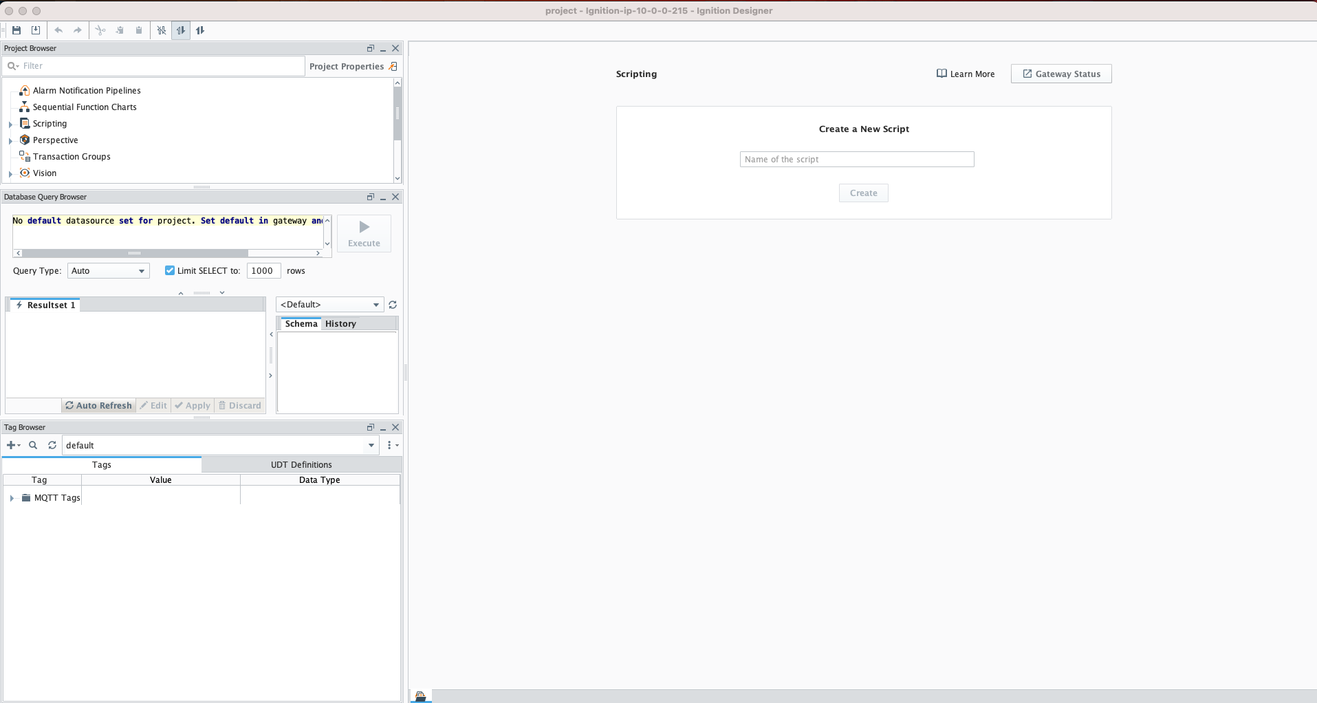 Note: if you enabled the Quick Start option when starting Ignition, a samplequickstart project will have been created and you will need to open that project.