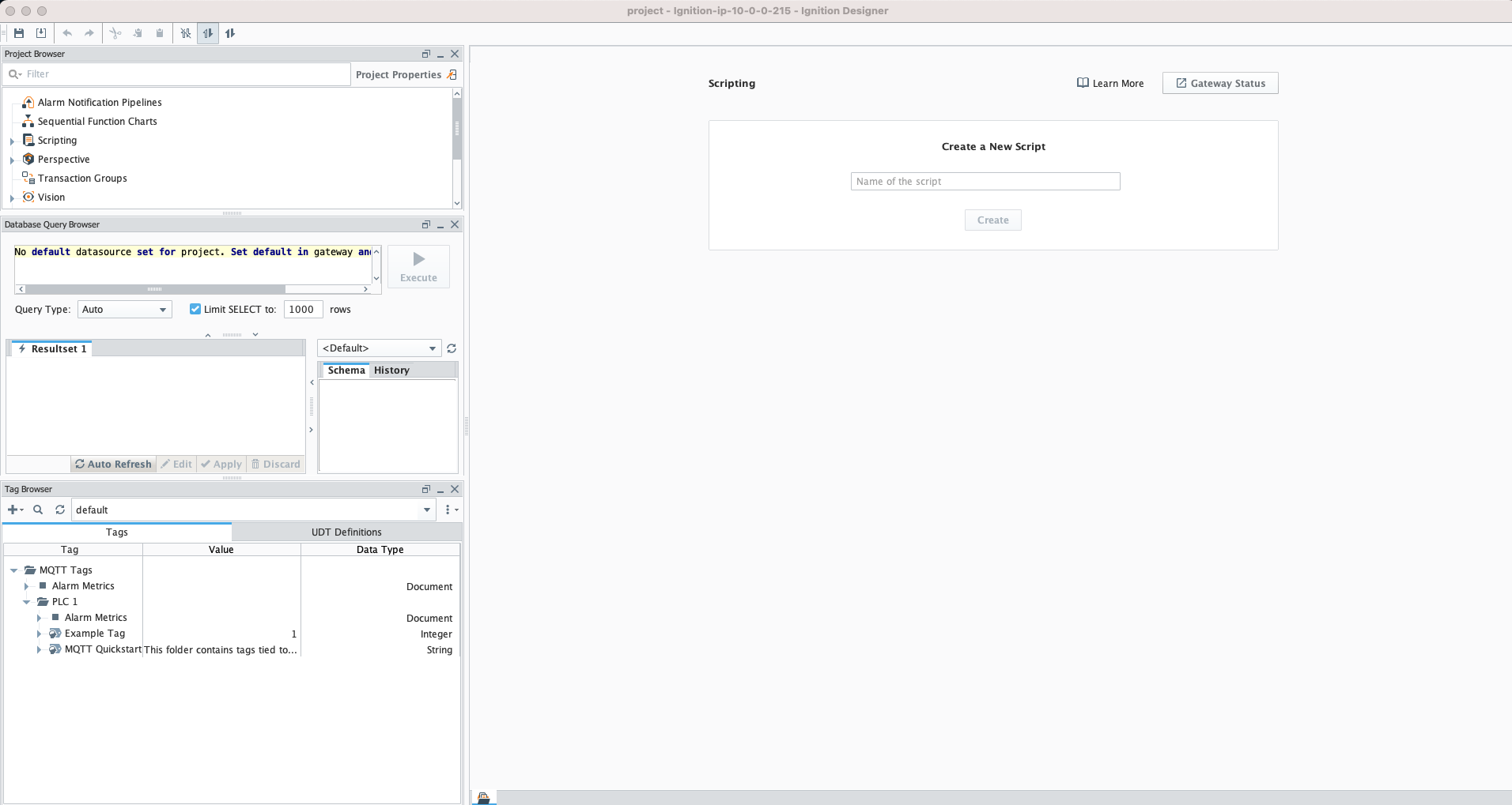 At this point are ready to edit the default tag, created as part of the MQTT Transmission installation, to send to MQTT Engine using the MQTT protocol and to do this we will use the Ignition Designer tool.