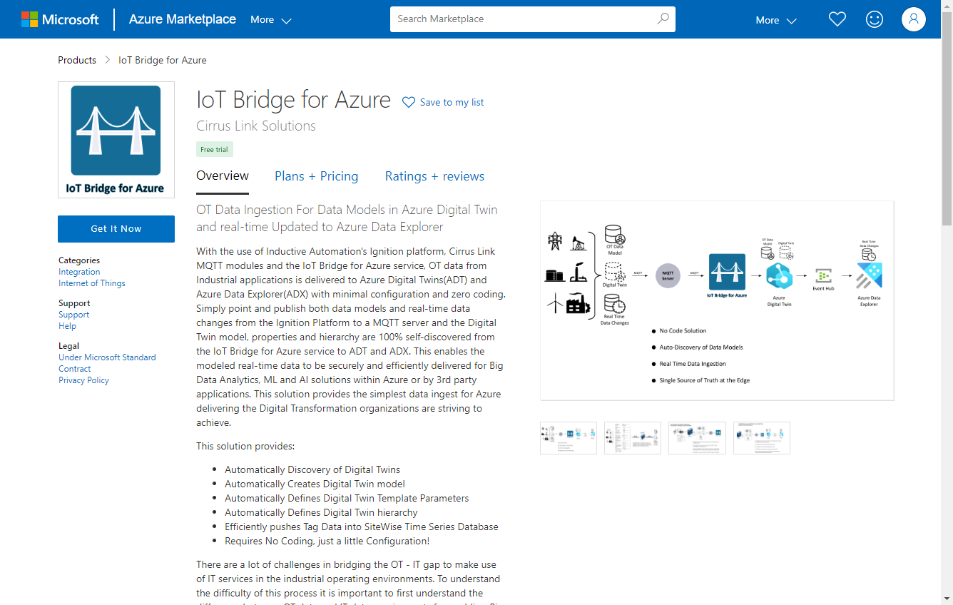 Select the IoT Bridge for Azure from the Azure Marketplace.
