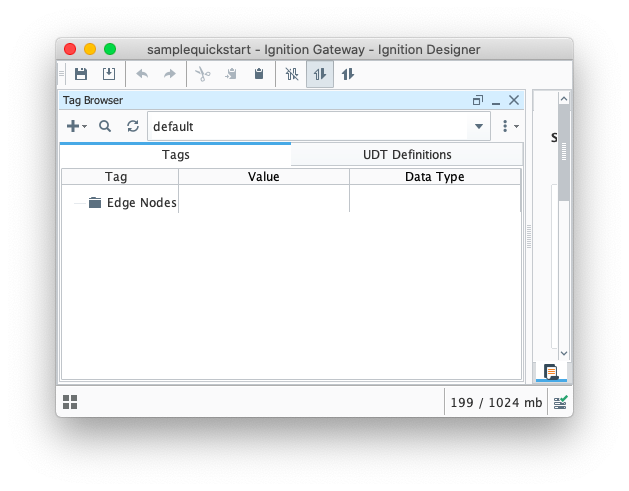 When the Azure Injector modules is installed in Ignition, an Edge Node folder is automatically created in the 'default' Ignition tag provider.