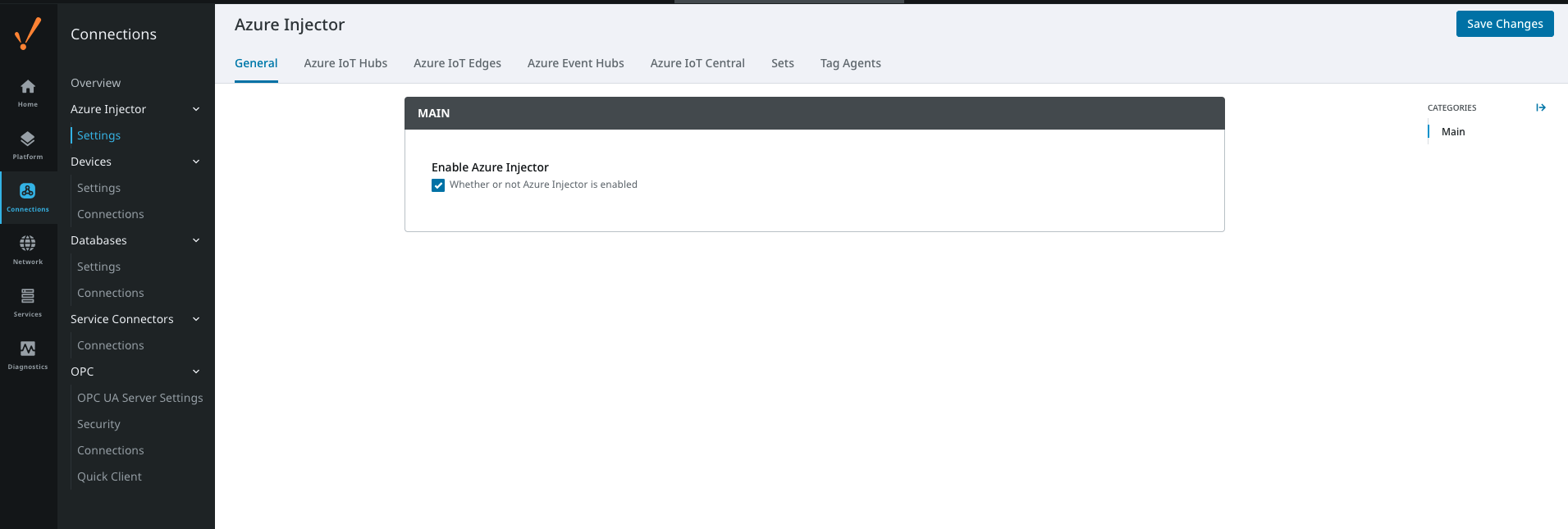 Now select 'Settings' under the Azure Injector section in the left navigation panel. After doing so, you should see the following page.