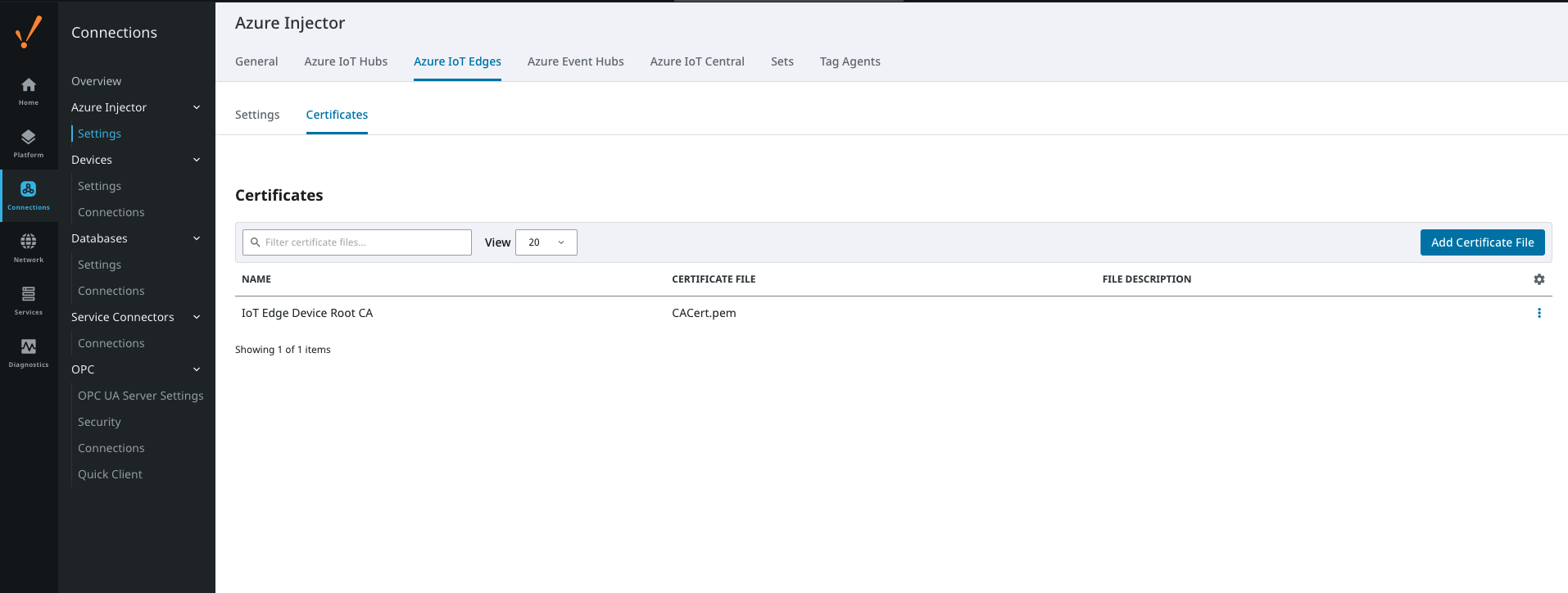 • CA Certificate File: The 'IoT Edge Device Root CA' created in the previous step
