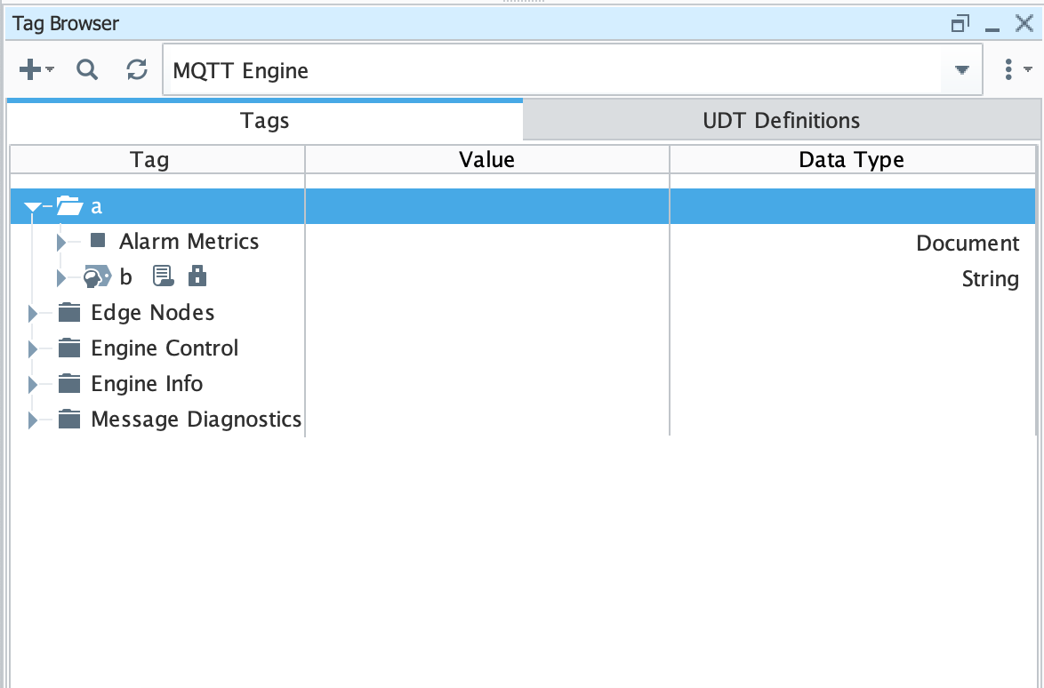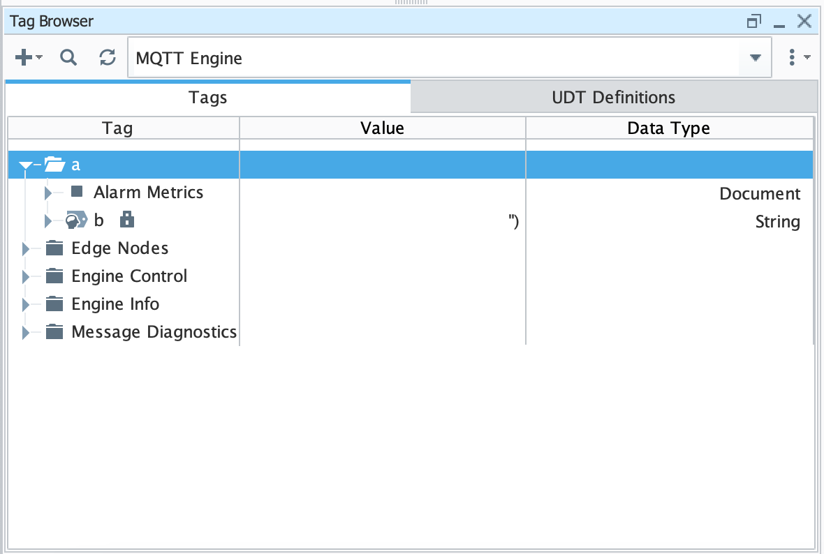 When the MQTT message is received and parsed by MQTT Engine, a tag will be create containing the binary data as shown below: