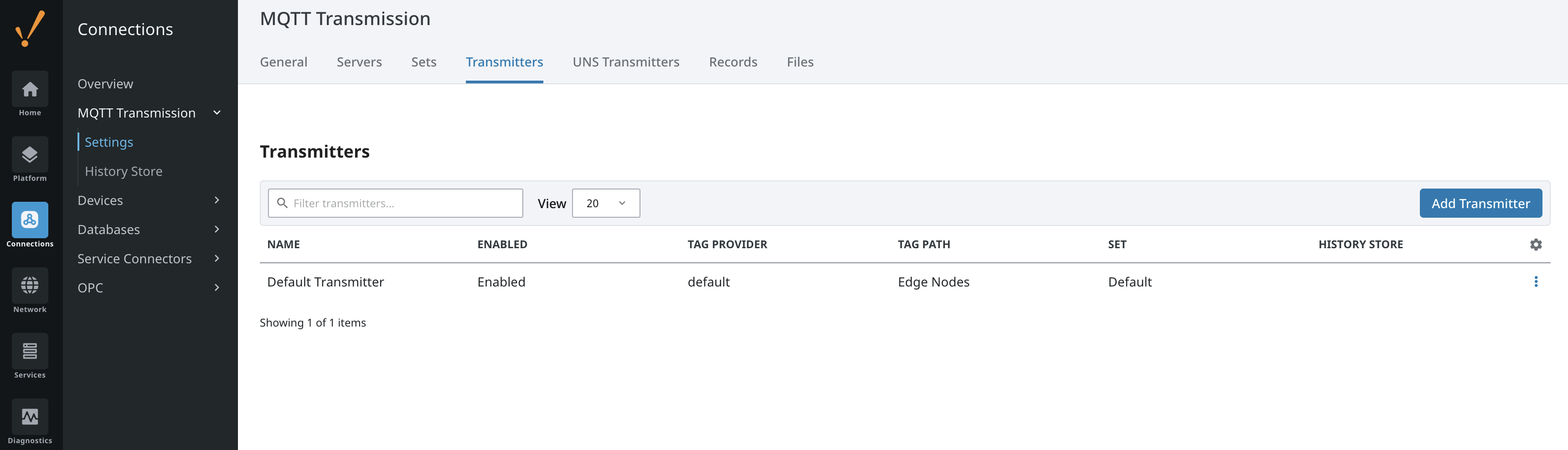 Consider the following Transmitter configuration in Transmission. Note: there are no Sparkplug IDs set for this Transmitter.