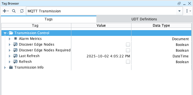 Now expand the Transmission Info folder under the MQTT Transmission tag provider as shown below.