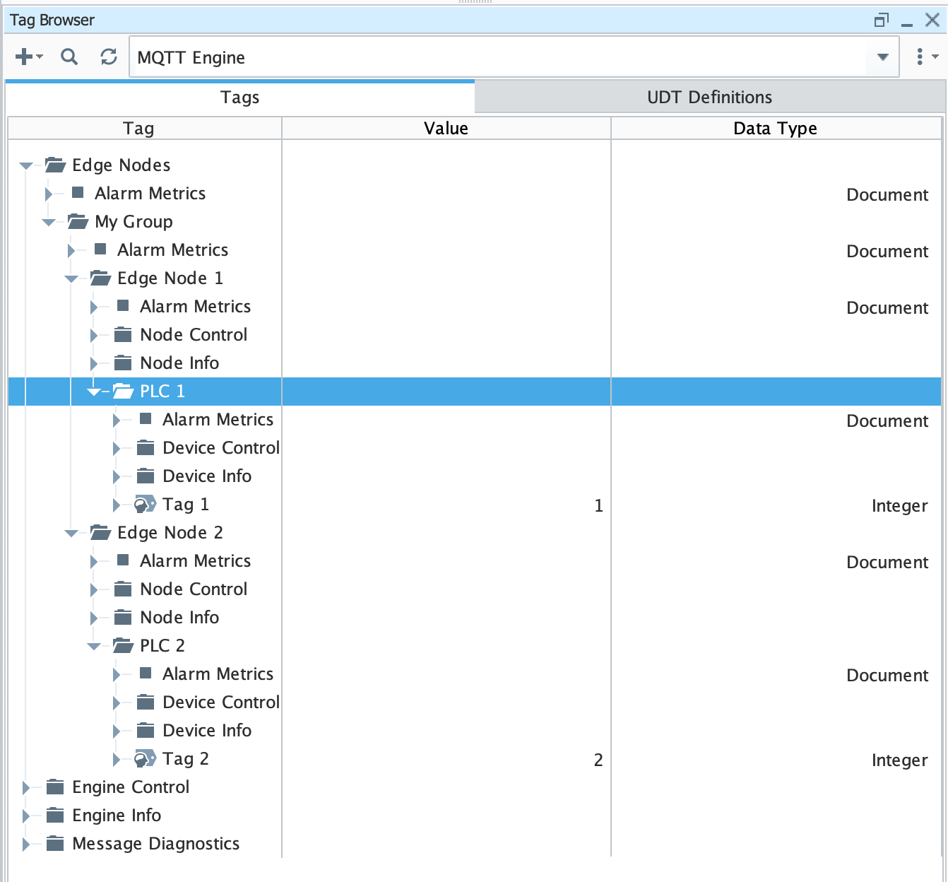 Finally, MQTT Engine should also now show 'Tag 4' in the tag tree.