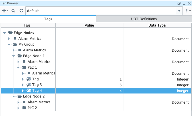 Building off of the example from the previous section add another tag to 'Edge Node 1' called 'Tag 4' as shown below: