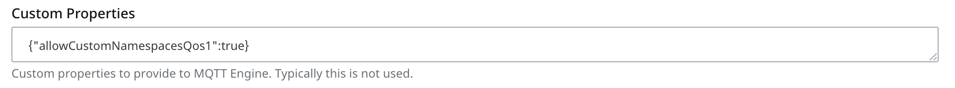 This custom property allows MQTT Engine to subscribe on QoS1 for custom namespace topics.