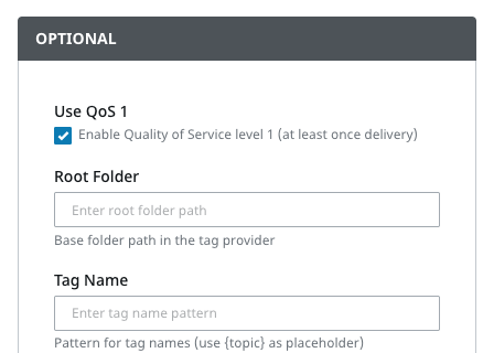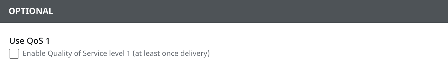 3. On the MQTT Engine 'Namespaces' - > 'Custom' - > 'General' configuration,  under the Optional section, select the QoS1 checkbox.