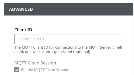 1. On the MQTT Engine 'Servers' configuration, under the Advanced section, make sure the 'Client ID' is set. This is required to configure the Clean Session option.